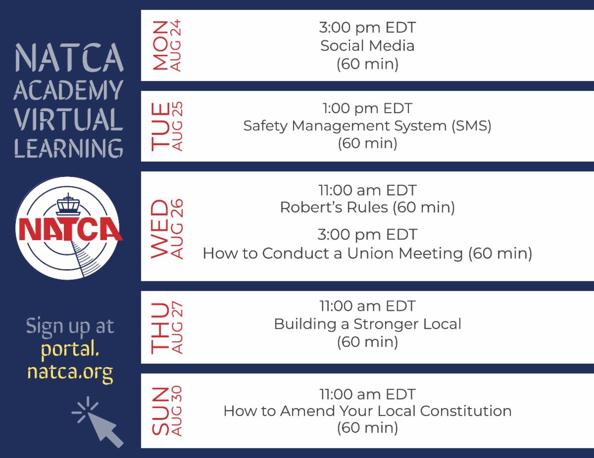 NATCA Academy Virtual Learning: Class Schedule Through September