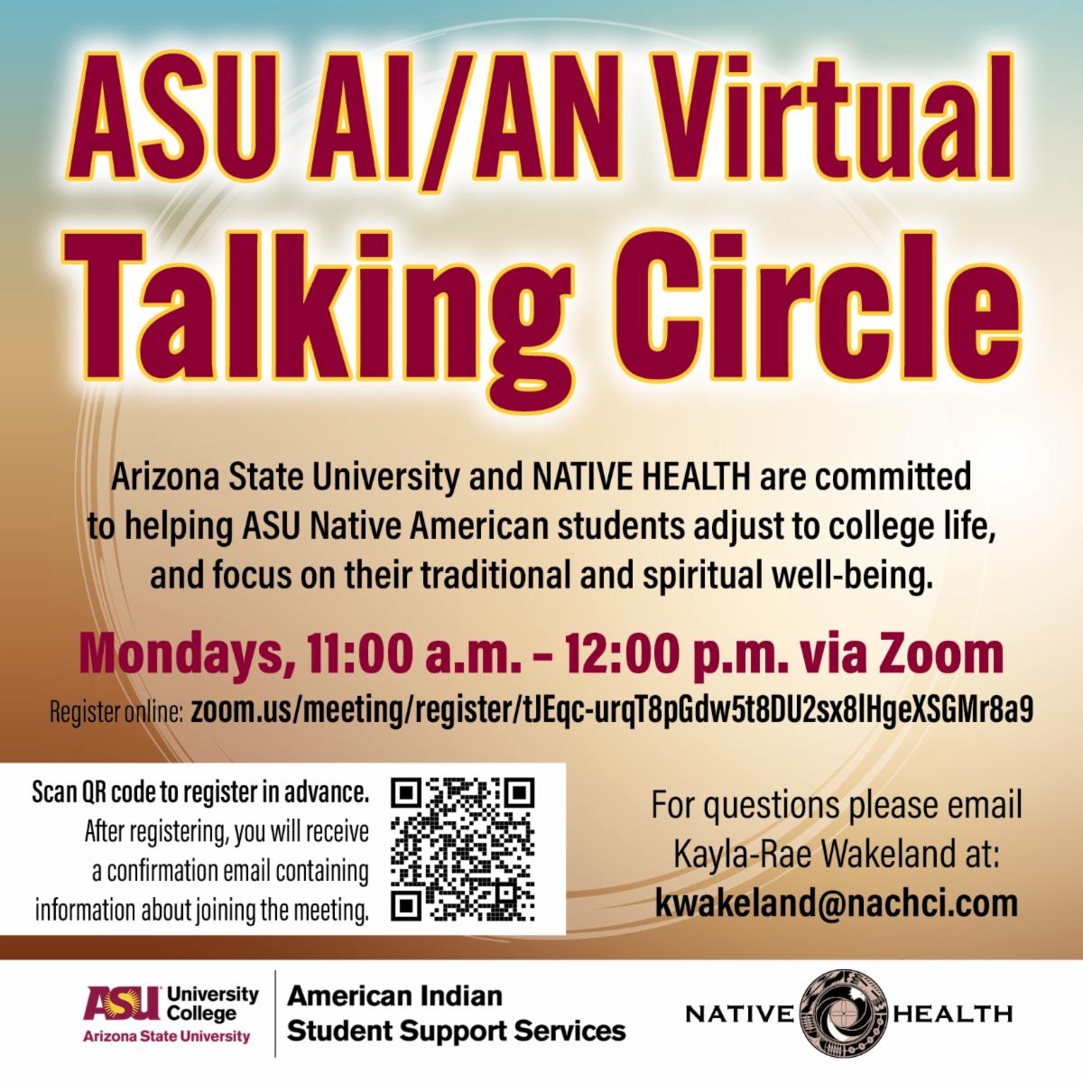 Native Americans with Cancer Support Group Healing Circle. Wednesdays. Virtual. Cancer Support Community of Northern Arizona. For more information call (928) 236-2333 or contact Sheena via email.