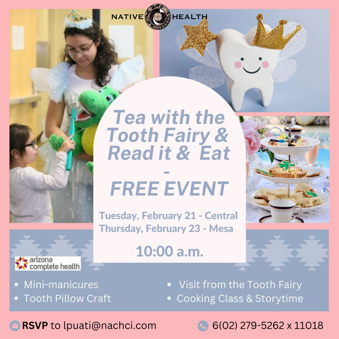 February 21 - Read it and Eat and Tea with the Tooth Fairy - NATIVE HEALTH Mesa. For more information or to RSVP contact Lanasha.