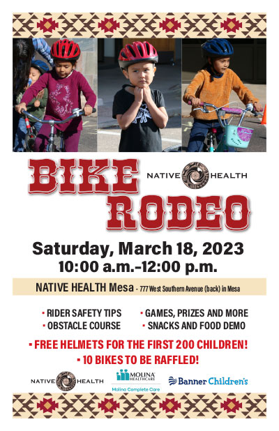 March 18 - NATIVE HEALTH's Bike Rodeo. NATIVE HEALTH Mesa, 777 West Southern Avenue, Mesa. For more information contact Lanasha.