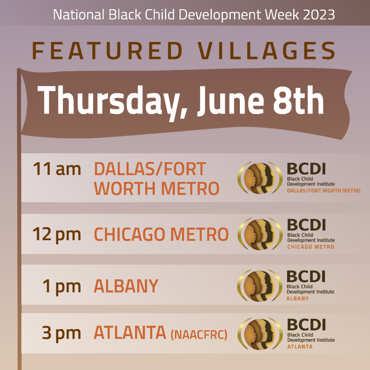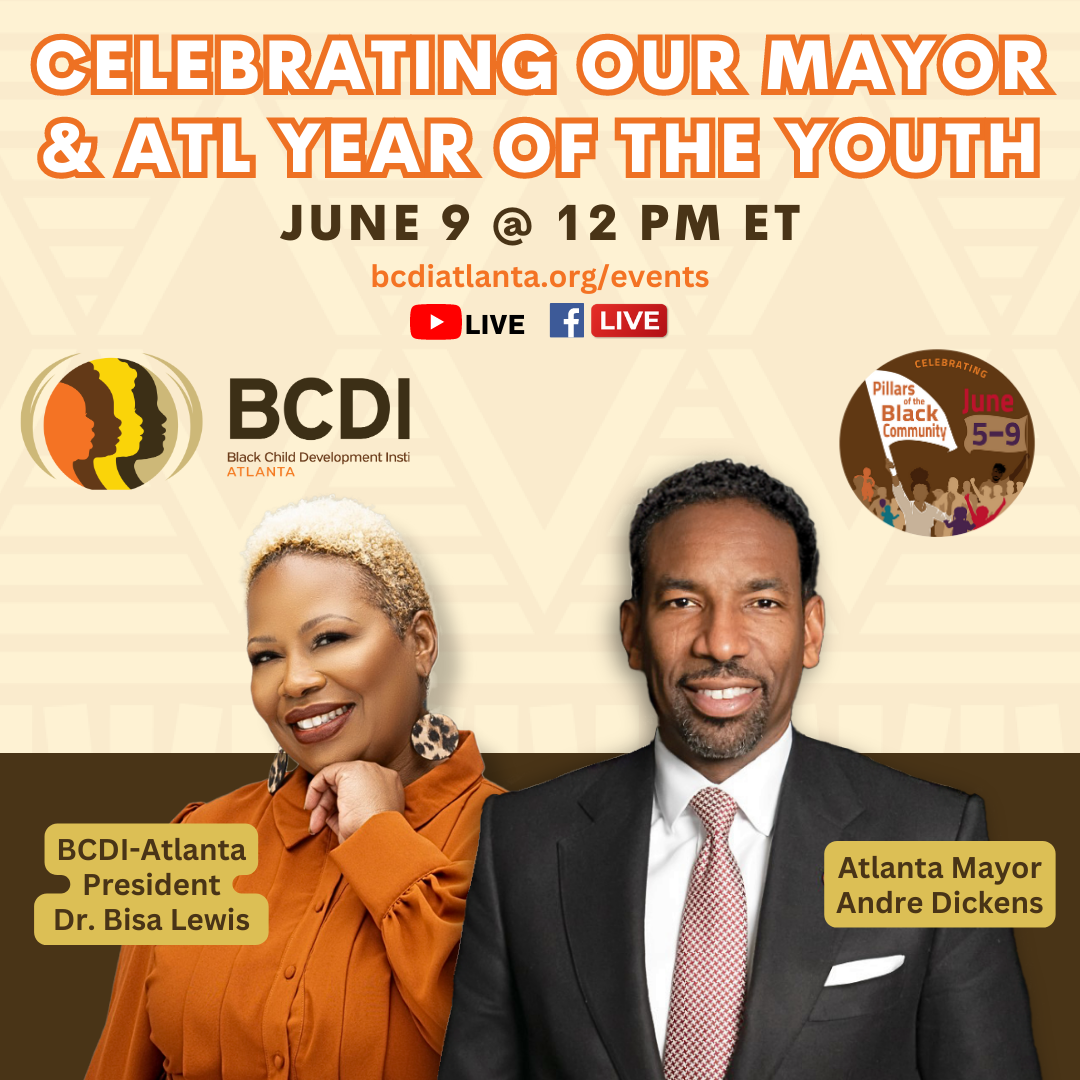 Please tune into National Black Child Development Week (NBCDW) during the week of June 5-9, 2023. BCDI-Atlanta is starting the week with our President's Address and closing with a fireside chat celebrating Atlanta Mayor Andre Dickens.
