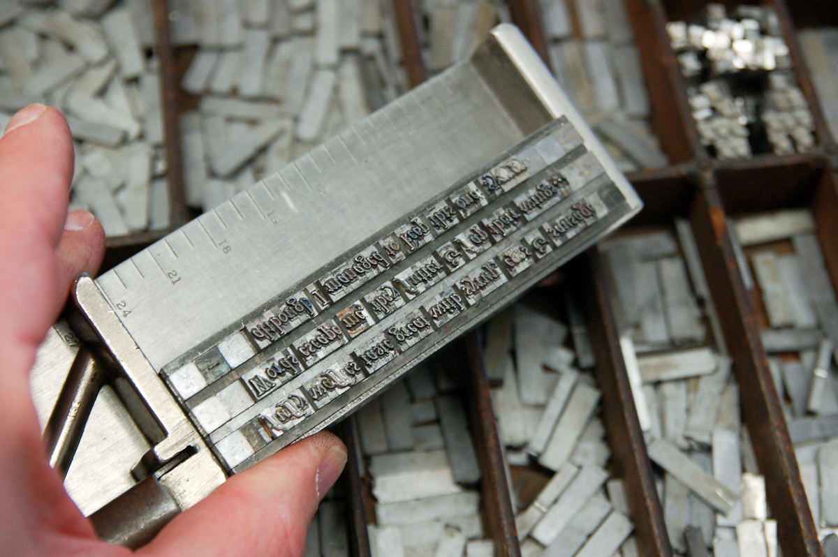 NBG’s letterpress shop, Northwoods Press, has drawers and drawers of type. Over fifty at last count. Including more than a dozen typefaces, in numerous sizes and fonts. But modern writing has emphasized several characters that are not in our type drawers (cases).