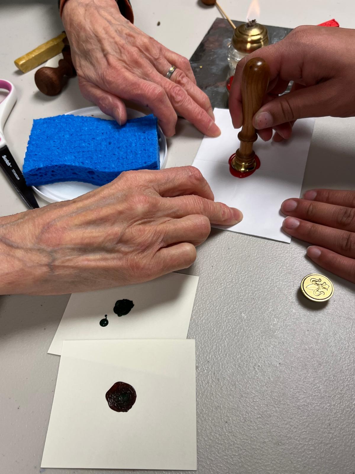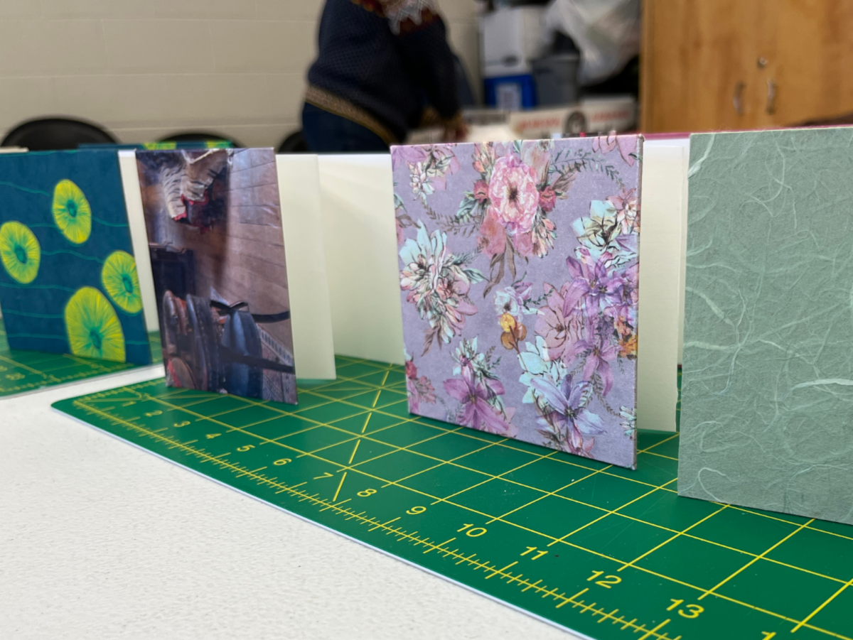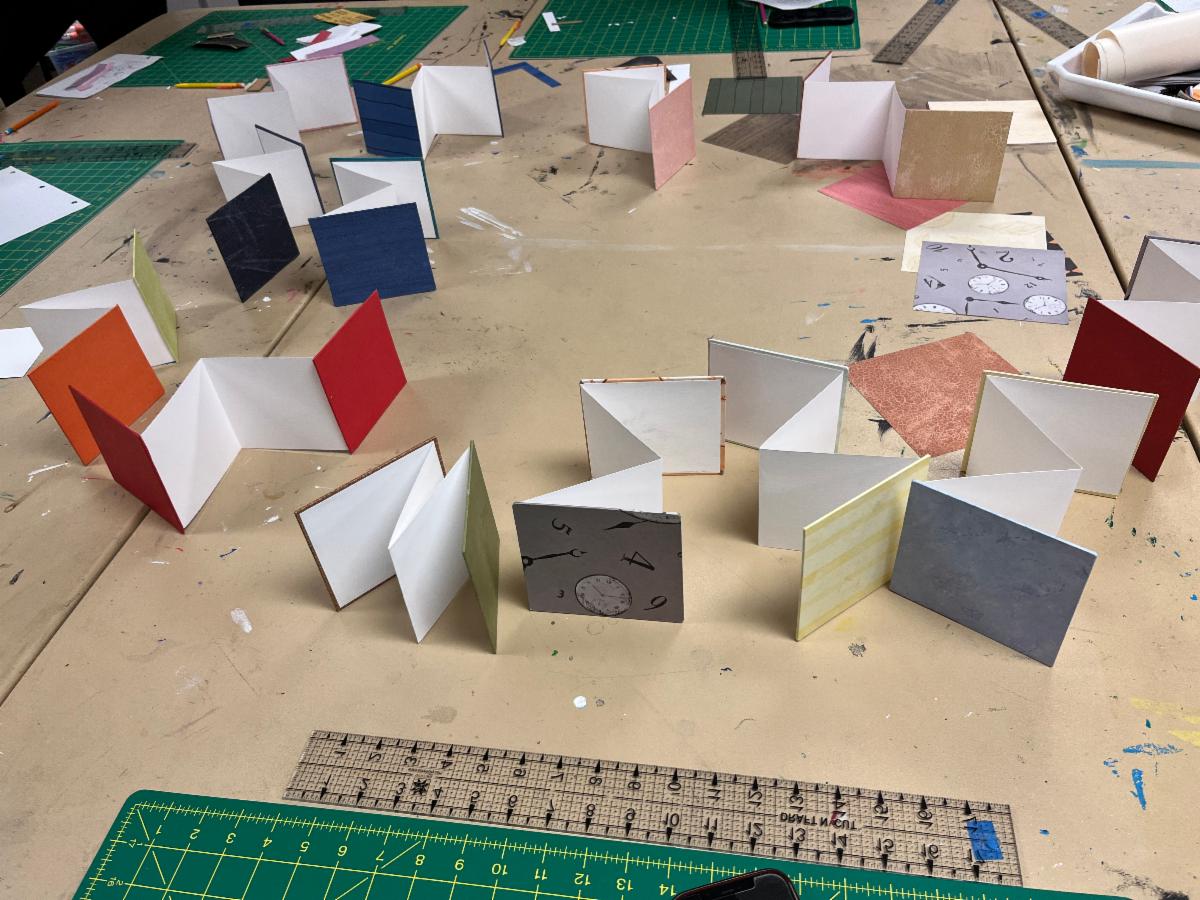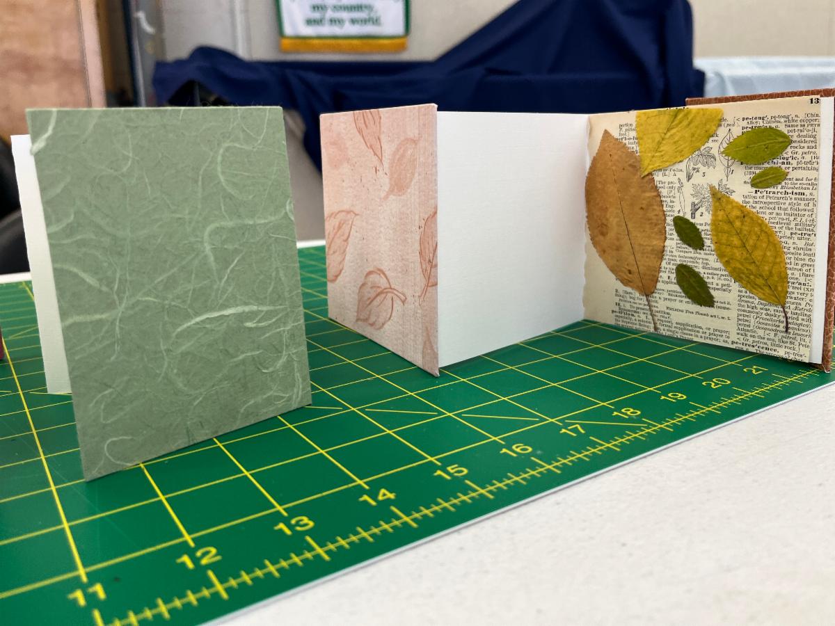 A group of tenacious OLLI students created two different accordion structure books. NBG members Vanessa DeWolf and Chris Greenfield-Pastro assisted students as they brainstormed and drafted narratives, created accordion structures, explored collage, and learned more about bookmaking tools and materials. Thanks to the OLLI students and staff for a fantastic experience.