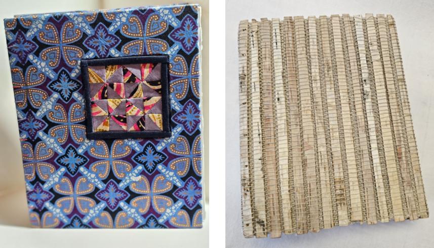 Working with various fabrics such as cotton and silk, threads/yarns and birch bark can be a creative way to include texture in book structures. We will focus on how to turn fabric into book cloth and the use of fabric and threads as pages within a book. I will demonstrate the use of other fibers as well such as silk, threads and other objects.