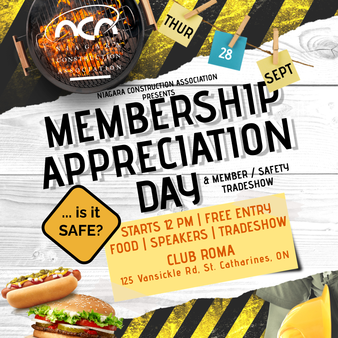 The 2023 NCA Safety Awareness Day Tradeshow will now be combined with the popular MEMBERSHIP APPRECIATION DAY barbecue on September 28, 2023 at Club Roma.