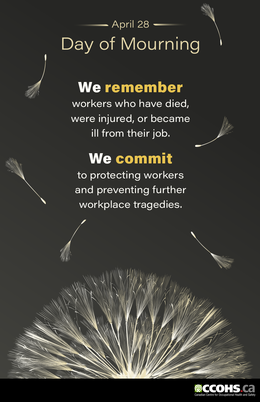 Marked annually in Canada on April 28, the National Day of Mourning is dedicated to remembering those who have lost their lives, suffered injury or illness on the job, or experienced a work-related tragedy.