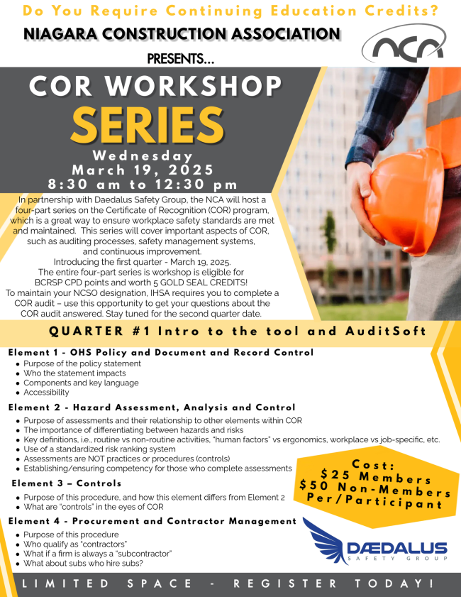 We are thrilled to announce that NCA Member Merit Contractors Niagara Ltd. has achieved COR 2020 certification!