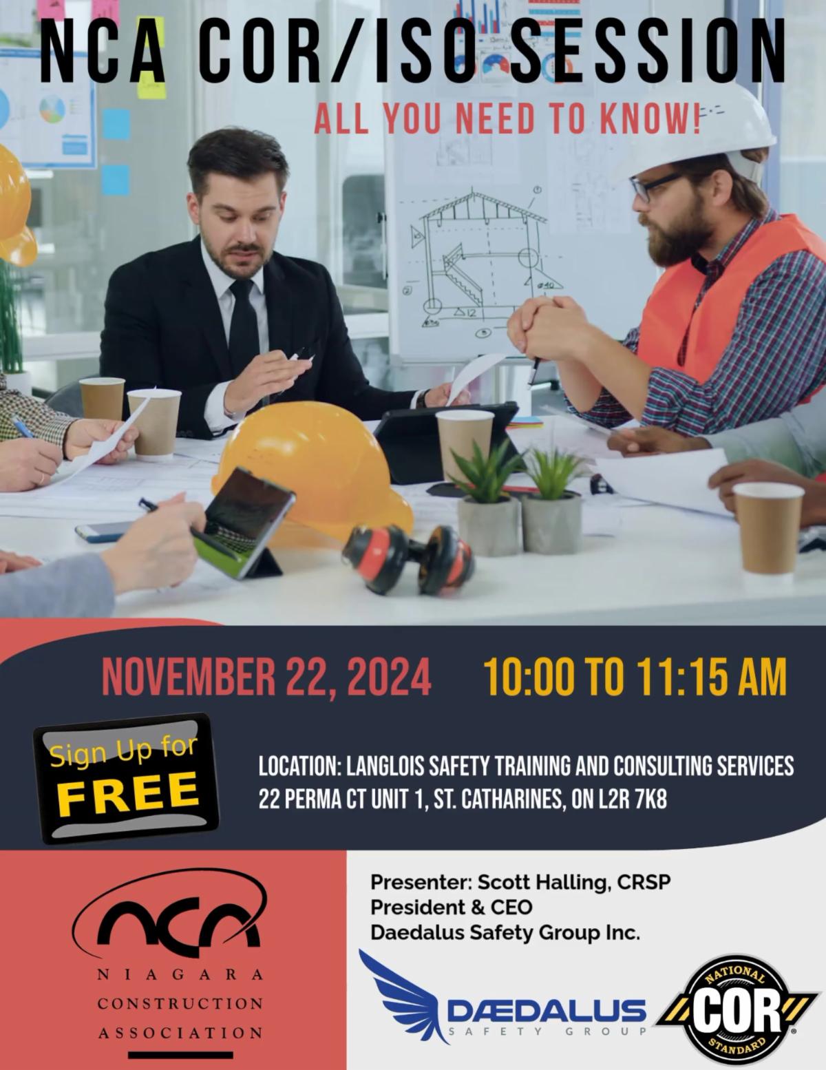 We had a successful event: the NCA COR/ISO Session on Friday, November 22, 2024, at Langlois Safety Training and Consulting Services in St. Catharines, Ontario.