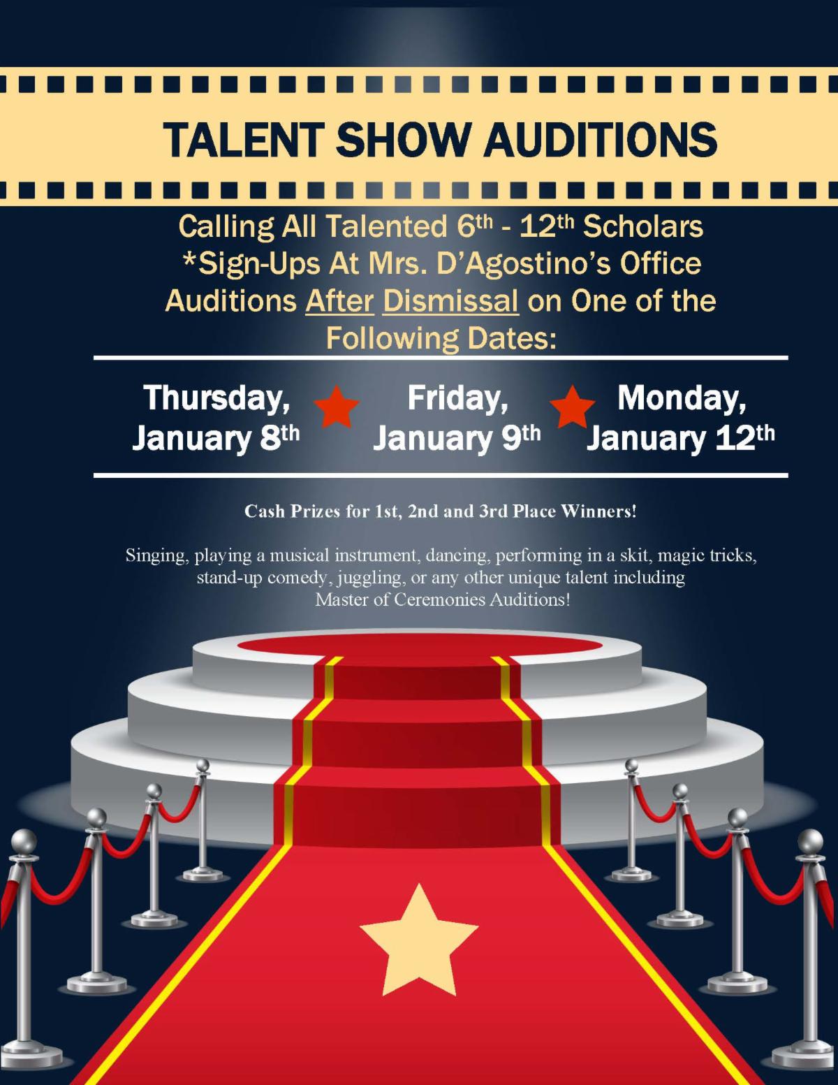 We are excited to welcome your scholars back to NCA when classes resume on Monday, January 5th. Please see the event schedule below to stay informed of school activities next week.