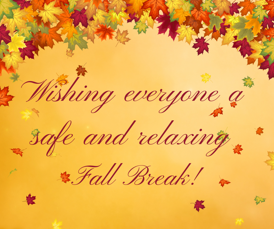 Wednesday-Friday, 10/15-10/17: No School/School Offices Closed – Fall Break