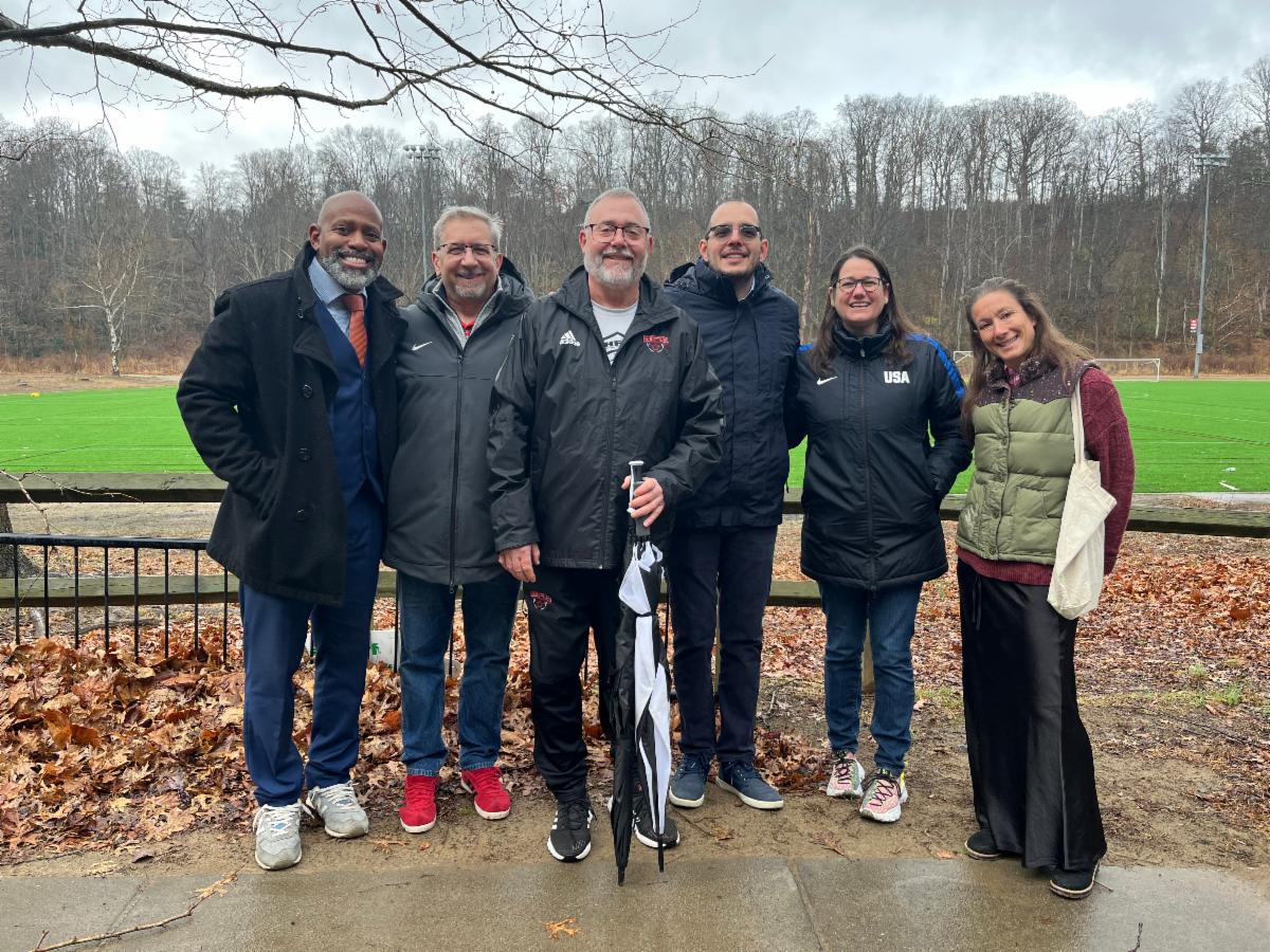 December 2, 2025, JBL Soccer Complex. Left to right. Jorge Redmond (ABASA), Darius Ejlali (NCASA), Mike Rottjakob, (ABYSA), Jose Rodriguez (FIFA), Sari Rose (U.S. Soccer), Felice Bell (ABASA) | | |