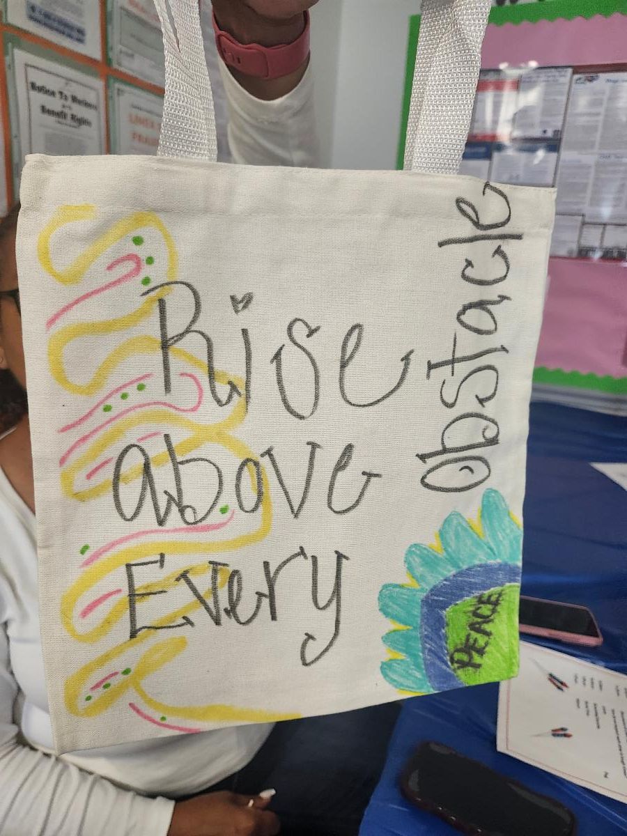 The moms also decorated canvas tote bags with their children’s names, calming beach images, and words of encouragement. This creative activity provided a moment of mindfulness and joy, allowing each mother to take home not just a bag, but a symbol of healing, self-worth, and hope.