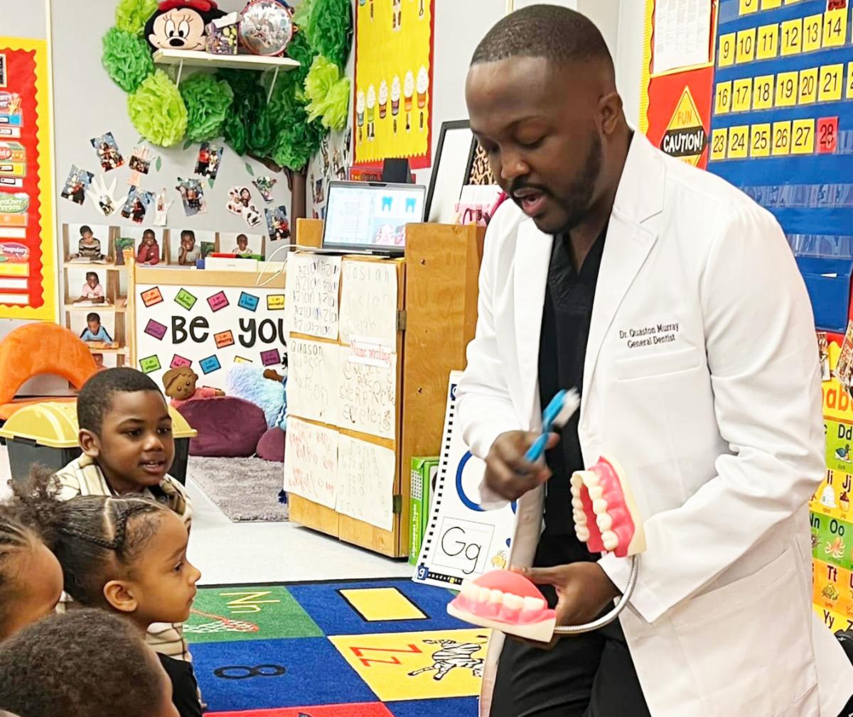 Students at Highland Charter Head Start recently learned all about caring for their teeth through a visit by Dr. Quaston Murray, a dentist with Riverbend Village Dental Care in Charlotte