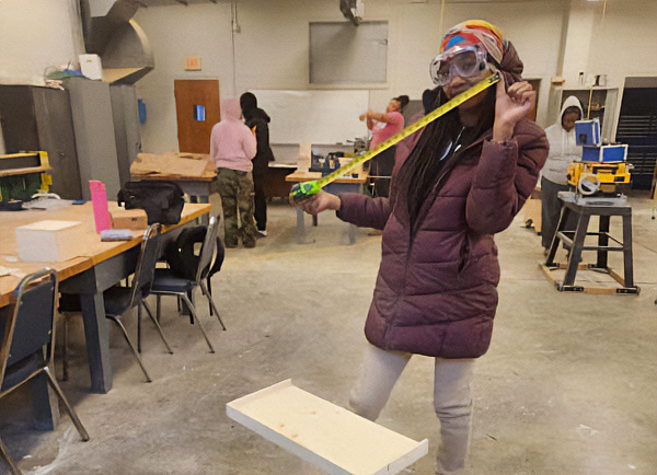 Franklin-Vance-Warren Opportunity, Inc.'s YouthBuild is a community-based pre-apprenticeship program for youth aged 16-24 who have previously dropped out of high school. Participants gain vocational skills in construction and other in-demand industries like healthcare, IT, and hospitality. Through required community service, youth contribute to affordable housing projects in their neighborhoods. They split their time between vocational training and the classroom, earning a high school diploma or equivalency degree, developing leadership skills, and preparing for postsecondary opportunities.Here, YouthBuild students are hands-on in their carpentry class, learning the fundamentals of construction and craftsmanship. | |