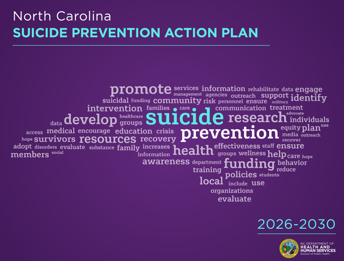 "We are grateful for the valuable feedback we received from the public," said Hannah Harms, State Suicide Prevention Coordinator for NCDHHS Division of Mental Health, Developmental Disabilities and Substance Use Services. "We incorporated many of those comments and ideas into the plan, and we will continue seeking opportunities to expand and strengthen this work in North Carolina."