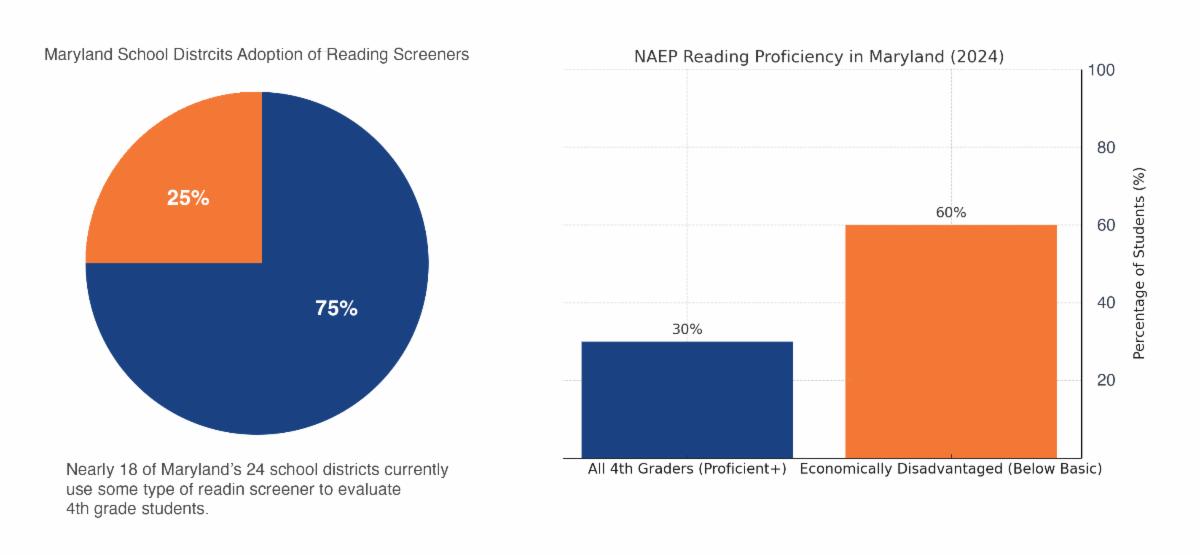 As most Maryland educators must know, the state legislature has approved new legislation concerning literacy instruction in the state’s public schools. The system of assessments districts use must include statewide universal screening, diagnostic surveys, and progress monitoring of student growth toward grade-level reading. Beginning in SY 2025-2026, MSDE will release a list of vetted and approved universal screeners to be administered three times per year – beginning of year, middle of year, and end of year. |