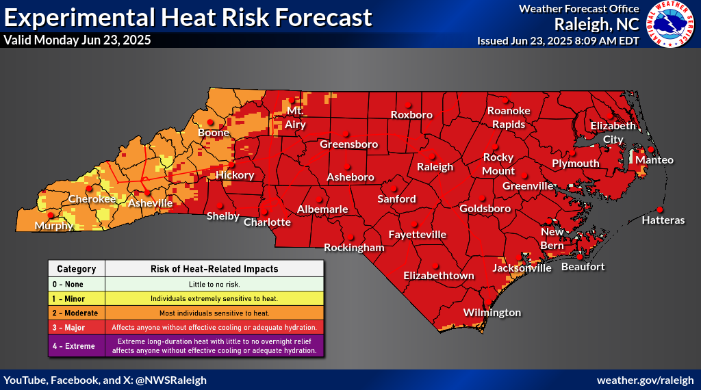 - Major and Extreme Heat Risk will impact anyone without effective cooling and/or adequate hydration, especially with little to no overnight relief.