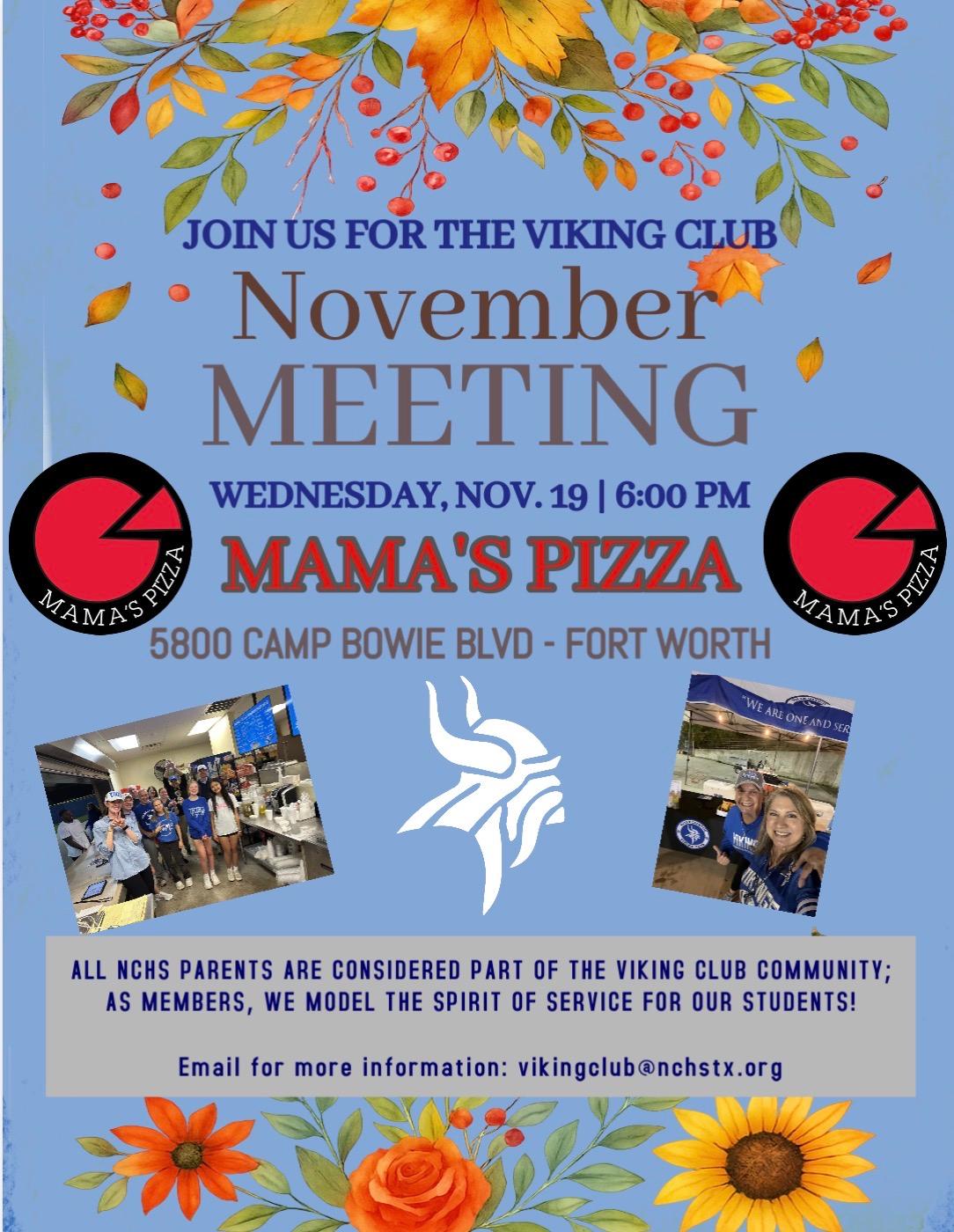 Viking Club Meeting at Mama's Pizza (6 PM)