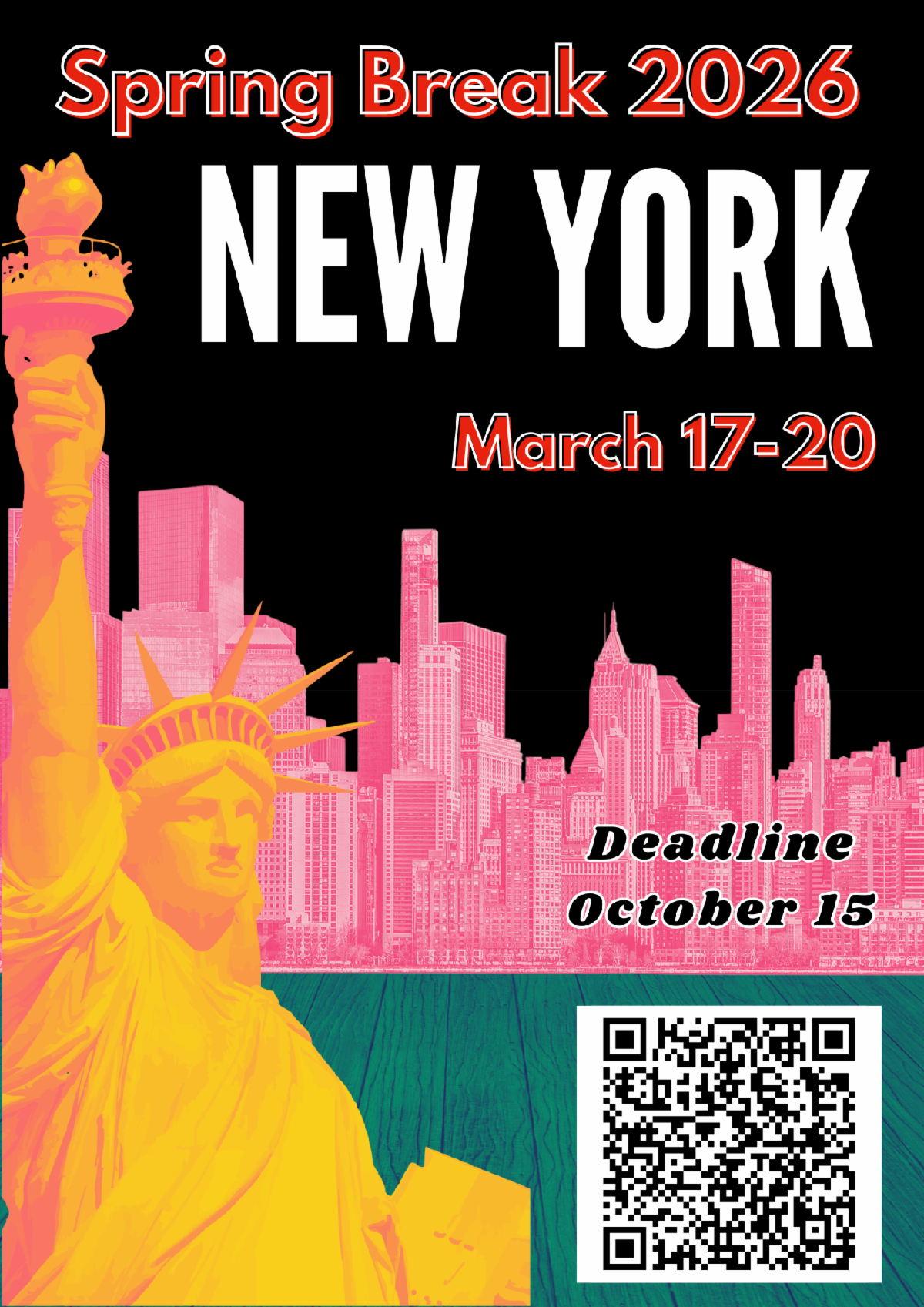Get ready for an unforgettable adventure in the Big Apple! The Nolan Fine Arts Department is excited to announce our Spring Break Trip to New York City, where students will immerse themselves in the heart of Visual Arts, Theater, and Music, while also taking in some of NYC’s most iconic attractions.