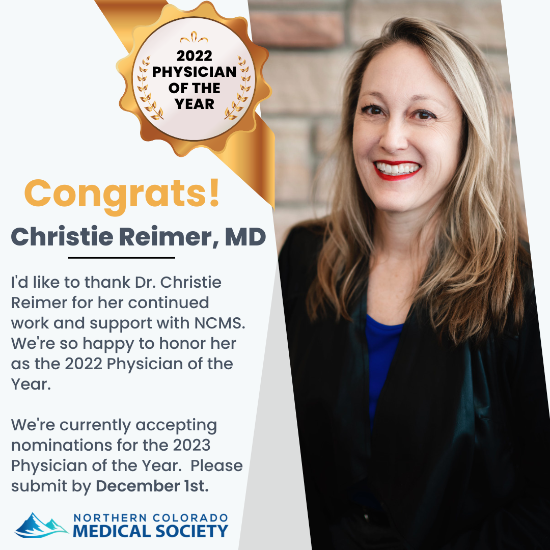 Welcome to fall, and soon to be winter. We've had a busy summer at the Northern Colorado Medical Society and are looking forward to our annual meeting in February. There are a few items that we will be dealing with during the meeting, and I wanted to get any possible feedback.