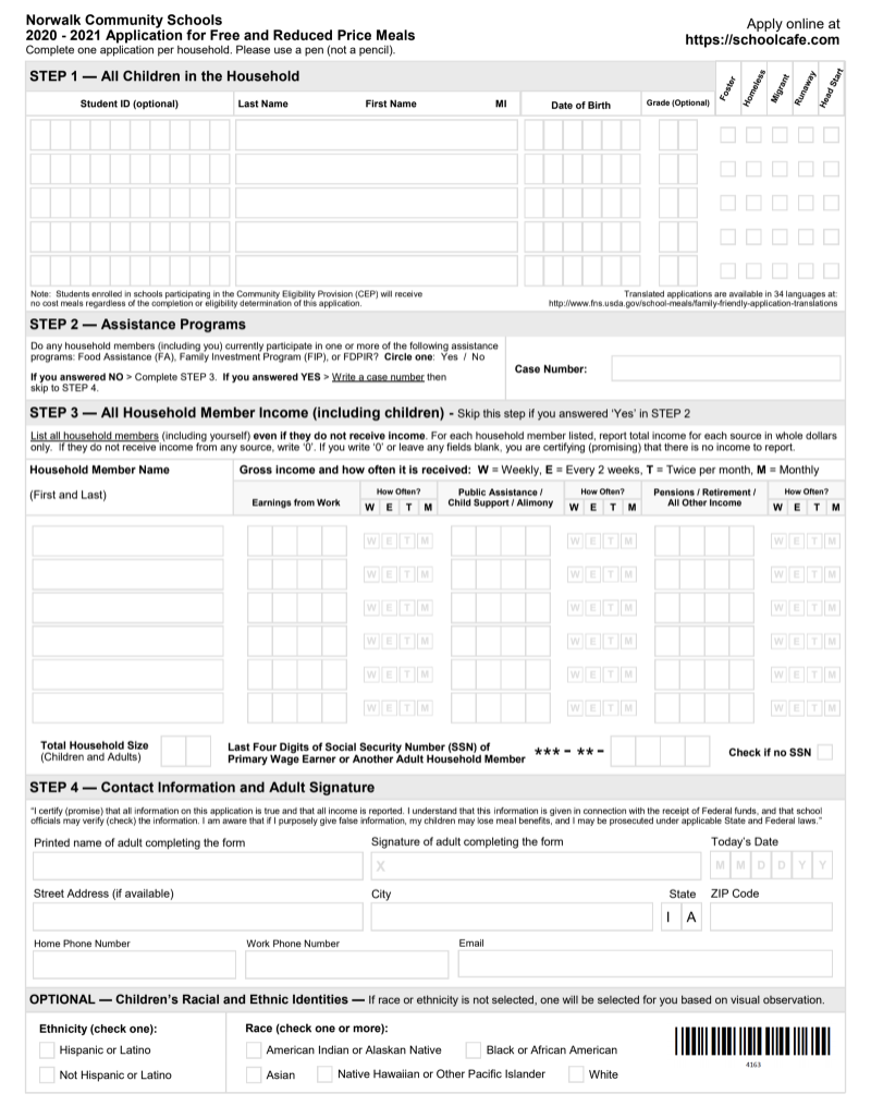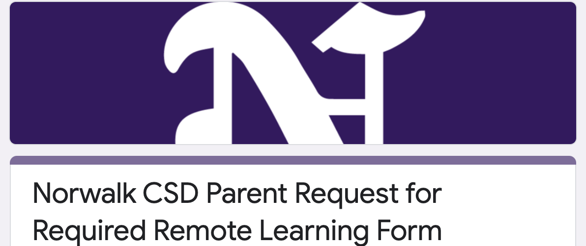 Norwalk CSD Parent Request for Required Remote Learning Form - DEADLINE AUGUST 1, 2020