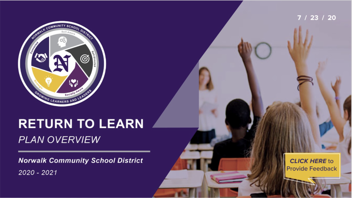 There is no doubt that 2020 has been filled with challenges for families, our district, and the communities that make up the Norwalk CSD. However, Patrick is showing his leadership abilities by focusing on a fundamental truth of what will see our families, our district, and our community through these tough times - the truth that if we all come together as ONE, we can successfully navigate through these challenging times. Here are some ideas that have been previously shared on how we can rally behind ONE goal - getting all NCSD students back to school sooner rather than later: