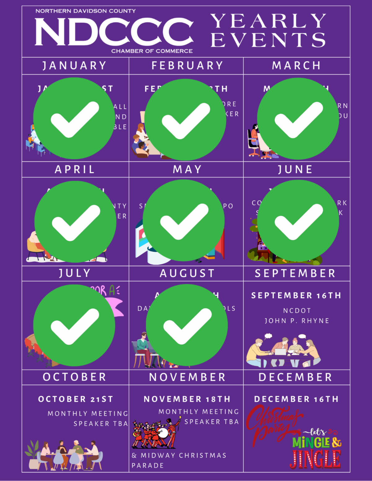 So please be thinking of where you can best help us out as you plan for the coming months. We will have sign up sheets for these three opportunities at our next meeting, as well as hear from representatives of the committees about expectations for volunteers. (Spoiler alert: they don't take up too much of your time and are a great way to get involved with your community and fellow Chamber Members!!)