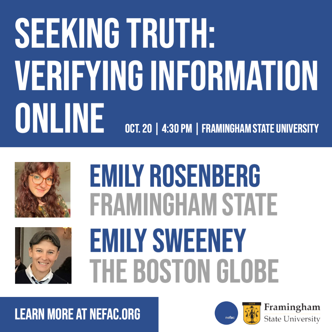 NEFAC’s Emily Sweeney, a reporter at The Boston Globe, will speak about professional information vetting strategies and provide guidance on how to best assess online news sources.