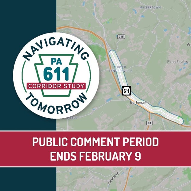 NEPA is conducting the PA 611 Corridor Study to evaluate transportation needs and opportunities along this vital route in Pocono, Hamilton, and Stroud Townships. PA 611 serves as a key north-south corridor connecting communities, businesses, and recreational destinations. The study aims to identify improvements that enhance safety, reduce congestion, and support economic growth while preserving the region's character.