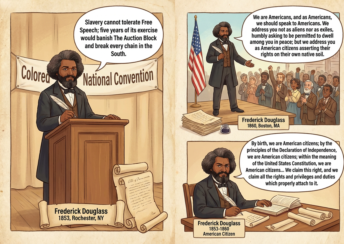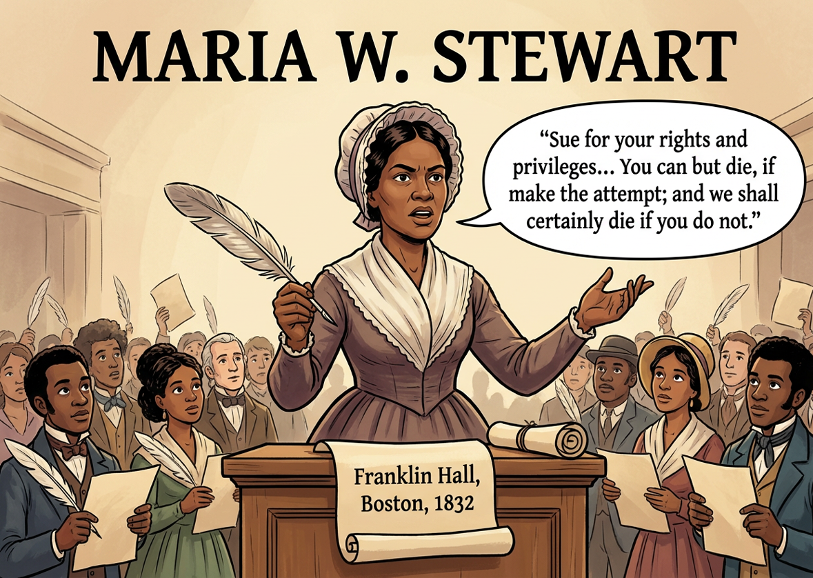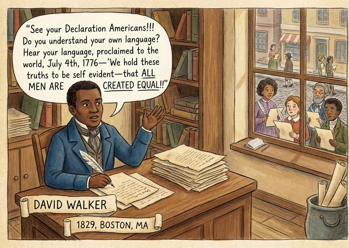 Abraham began researching, swiping at his magnifying glass - which Imani now knew was like a tablet, and maybe a time machine. He even would ask for books- and they would just float down to him?? “1777 and 1788, Prince Hall. 1831-1833, Maria Stewart. 1841 – 1847, Frederick Douglass. James Forten in 1799, 1800, 1813, and the 1830’s. James’ son-in-law Robert Purvis between 1831 and the 1840’s. The American Anti-Slavery Society between 1836 and 1844. David Walker in 1829. Women’s Anti-Slavery Societies between 1834 through the 1840’s, in Philadelphia, New York, and Boston. Richard Allen in 1799 and 1800.” He said different names and dates, and books floated down to him, opening to certain pages. He would lean in and show Hope some of the pages. Then he finally said, “Guess what their common denominator is?” He looked up.