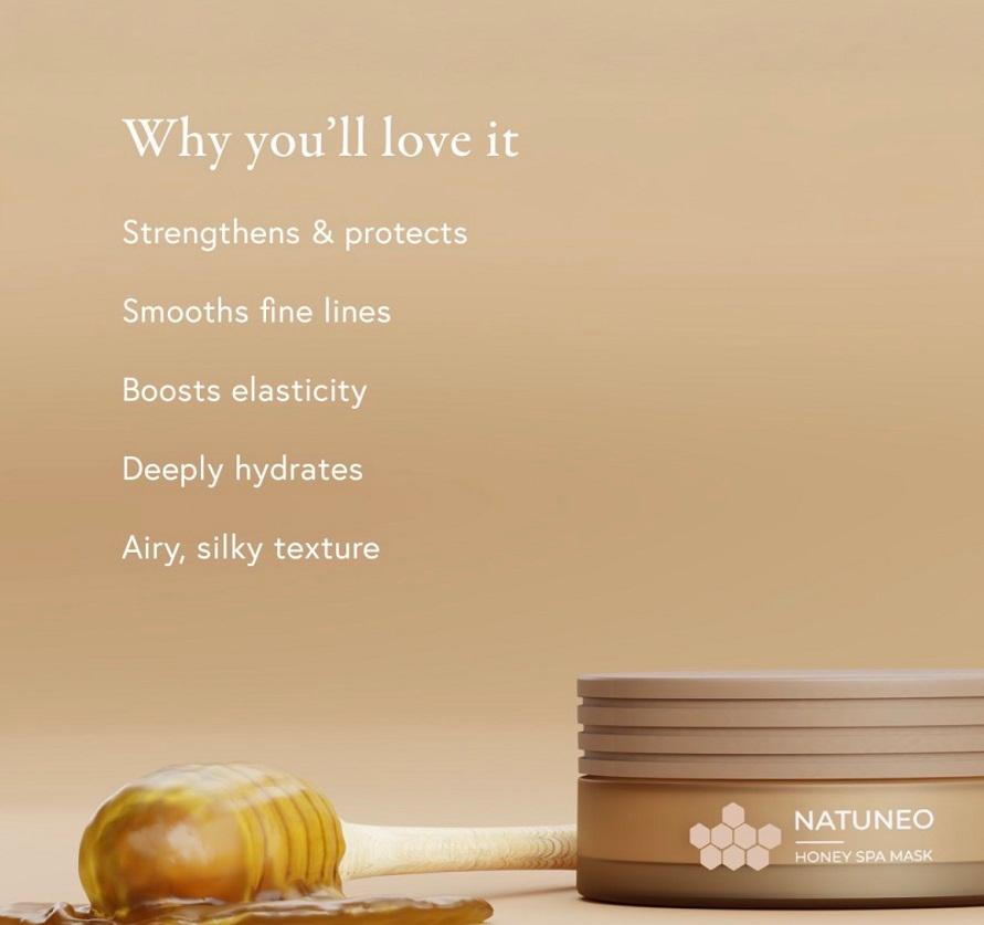 Why you'll love the HONEY MASK; It smooths, strengthens and protects the skin. Deeply hydrates and boots elasticity. Your skin will LOVE this MASK!