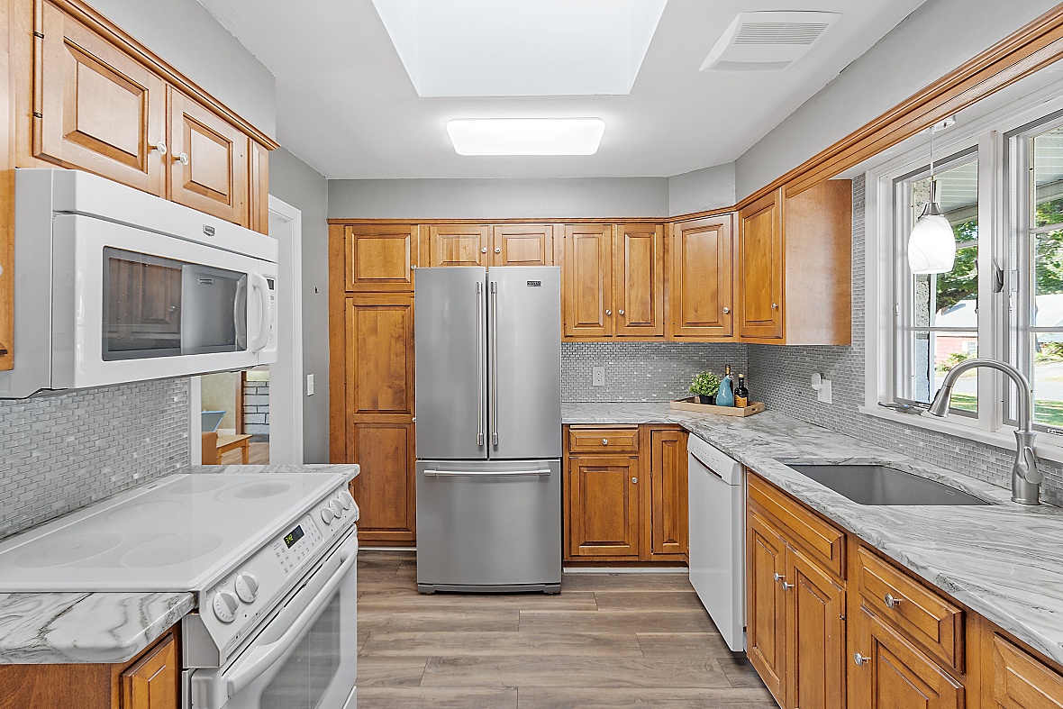 This home has an attractive floor plan with flexible living and dining spaces. The kitchen has been recently updated with granite countertops and tile backsplash.
