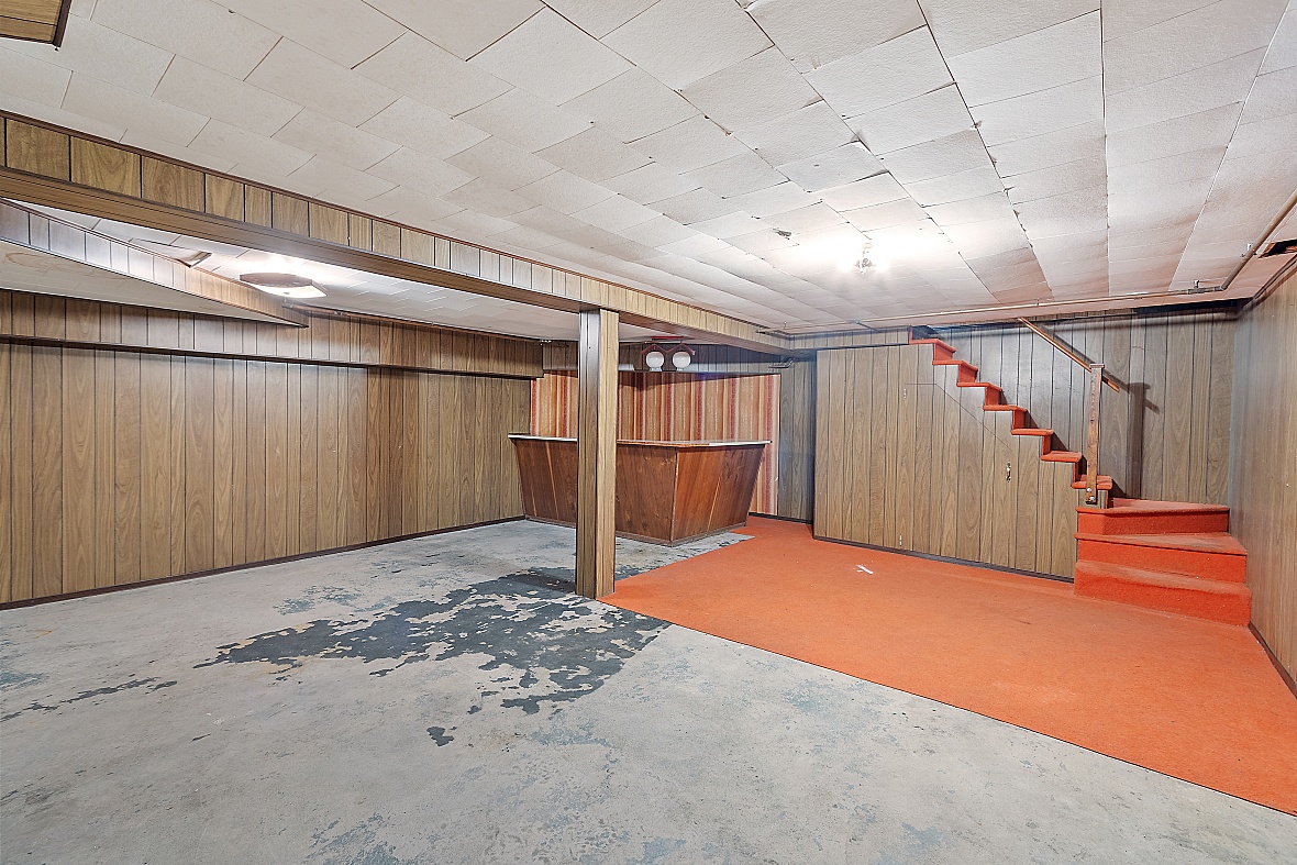 Plenty of work space in the basement, as well as a room with a large bar area, ready for finishing.