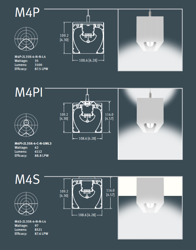 The MEGA linear LED luminaires are engineered for supreme functionality, high efficacy and leading edge design. The carefully constructed interior curved reflector allows the light beam to bounce creating a smooth, consistent glow with wide Bat-wing distribution. These open cavity luminaires look astonishing in any office environment, library, retail space, classroom or health facility. The M4 Series is available in pendant direct, pendant direct/indirect and surface mounting with symmetric distribution for ideal performance in any application.