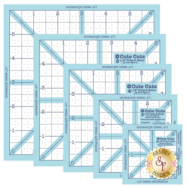 The Cute Cuts Square Ruler Pack has 5 rulers of varying sizes which are useful for a variety of projects. Scroll down and take a look!