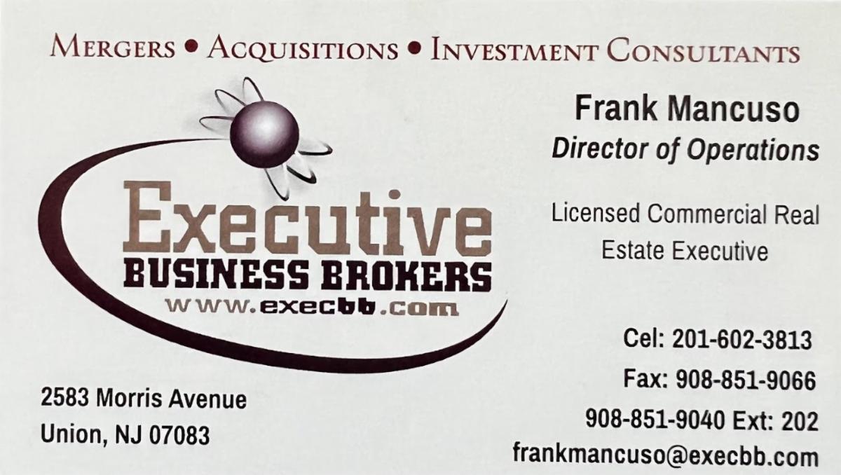 We are always in search of quality businesses to list. If you are thinking of selling your business, would like to acquire another business, or you would like an evaluation of your current business, please email us at frankmancuso@execbb.com or call 201-602-3813 or 908-908-851-9040 EXT: 202