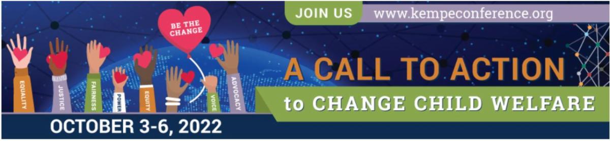 Secondly, we are proud to share that again NIPFC is a proud supporter and conference partner of the Kempe Center’s 2022 International Virtual Conference: A Call to Action to Change Child Welfare. The conference will take place from October 3-6, 2022, and we include the Call for Abstracts, which is open until June 10, 2022. NIPFC is a regular and frequent presenter and participant at this conference, which continues to evolve and make international impacts in the urgent advancement of child welfare reform.