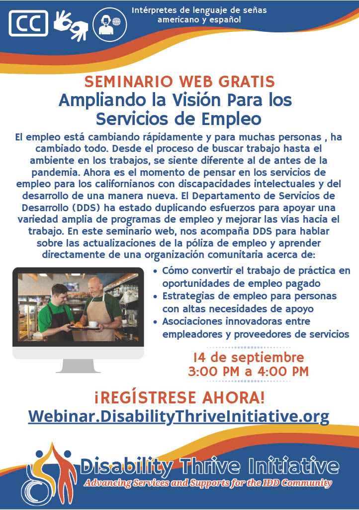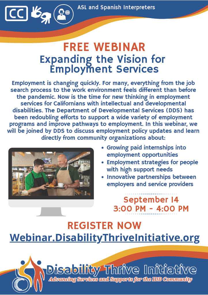 Employment is changing quickly. For many, everything from the job search process to the work environment feels different than before the pandemic. Now is the time for new thinking in employment services for Californians with intellectual and developmental disabilities. The Department of Developmental Services (DDS) has been redoubling efforts to support a wide variety of employment programs and improve pathways to employment. In this webinar, we will be joined by DDS to discuss employment policy updates and learn directly from community organizations about: