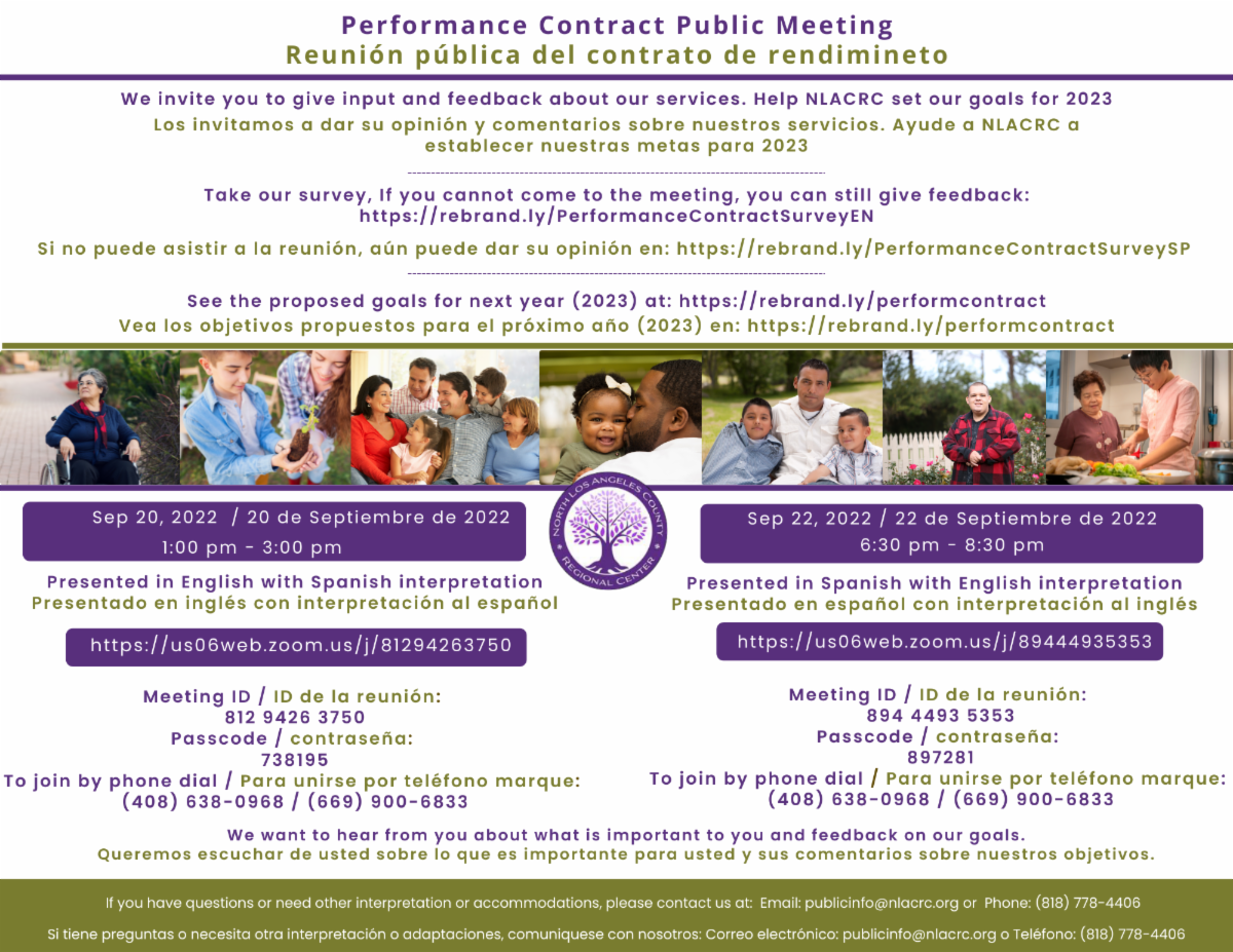 Make your voice heard! Please mark your calendar for NLACRC's Performance Contract public meetings. We invite your input and feedback. Help set our goals for 2023!