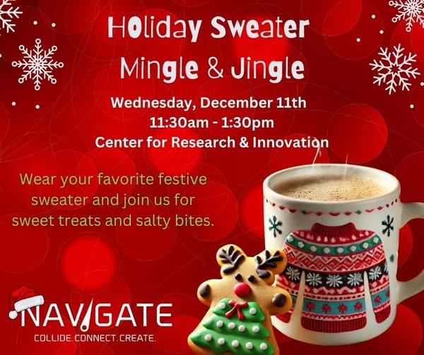 Holiday Sweater Mingle & Jingle, Navigate, December 11, 2024, 11:30 a.m.-1:30 p.m., Centre for Research & Innovation (CRI), Corner Brook, In-person.