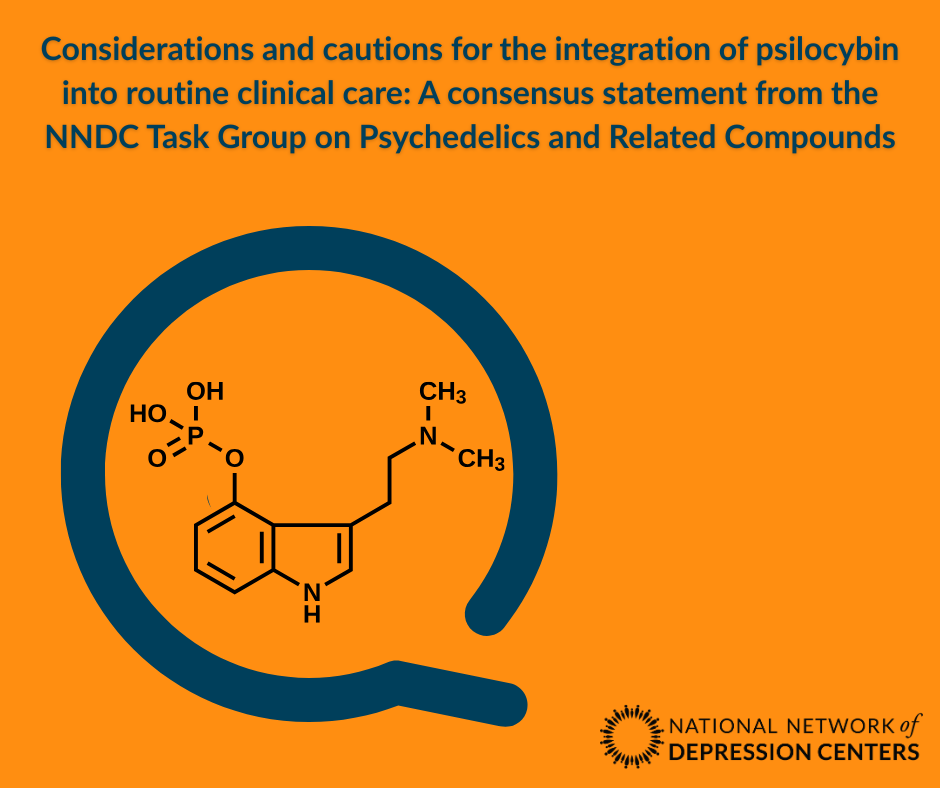 The US National Network of Depression Centers (NNDC) Task Group on Psychedelics and Related Compounds—comprising psychiatrists, psychologists, neuroscientists, psychedelic researchers, and leaders in healthcare consulting affiliated with the NNDC—developed this consensus statement as a summary of clinical expertise and opinion on the matter, to recognise psilocybin's therapeutic potential while also emphasising the need for further research and careful consideration before the integration of psilocybin into routine clinical care. We outline the current state of the science on psilocybin, incorporating articles published through April 2025.