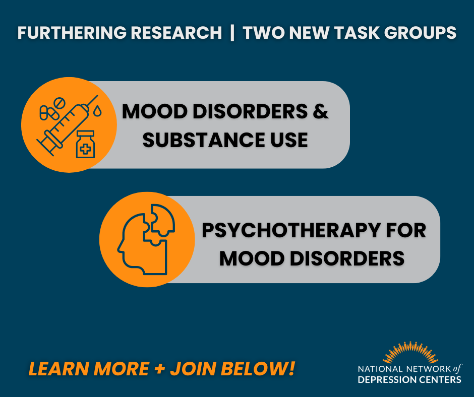 NNDC Task Groups are where the magic of collaboration happens and we've got two new ones as of this fall: the Mood Disorders & Substance Use Task Group and the Psychotherapy for Mood Disorders Task Group.