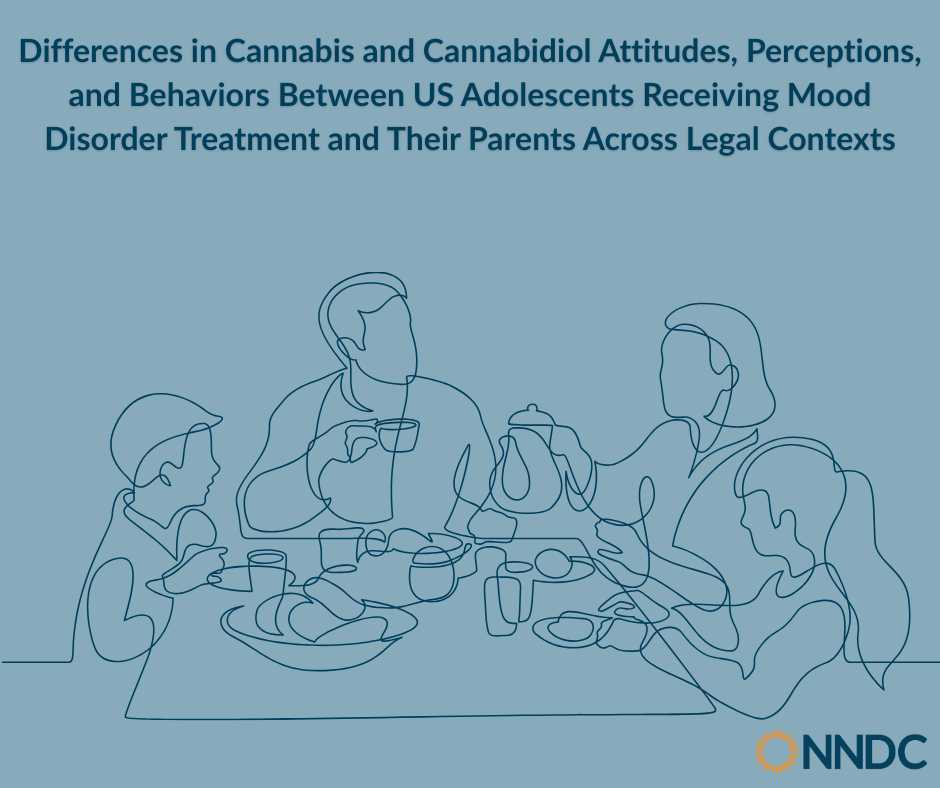 Dramatic shifts in state-level cannabis laws (CLs) and federal hemp regulations have resulted in increased availability and use of cannabis and cannabidiol (CBD) products throughout the US, with unknown implications for the youth. Youth with mood disorders represent a vulnerable population that is more likely to use cannabis and CBD and is at elevated risk for experiencing cannabis-related adverse health outcomes. This multisite study characterized attitudes, health perceptions, and behaviors related to cannabis and CBD use among US youth receiving mood disorder treatment and their parents, and assessed whether attitudinal differences varied as a function of respondent group and state-level CL status.