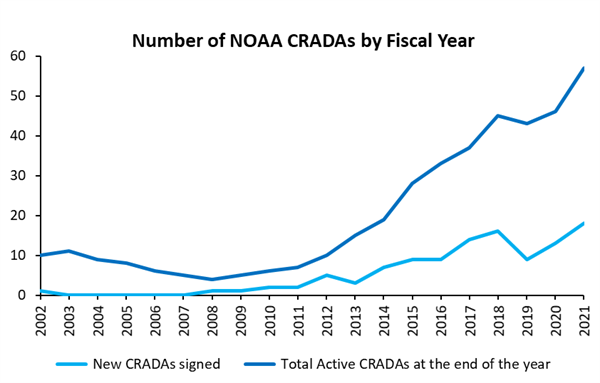 The NOAA Technology Transfer Program executed three Cooperative Research and Development Agreements (CRADAs) in July. These collaborations between NOAA and private-sector innovators accelerate research and development that supports both NOAA’s operations and commercialization within the private sector. Public-private research partnerships fuel innovation at NOAA. Research partnerships are increasingly important as scientists work to address complex global problems like coastal resilience, food security, and climate change. Public-private partnerships, in particular, are vital for bringing private sector innovation and agility into NOAA’s research and development efforts. One of the key tools in NOAA’s partnership toolkit is the CRADA, or Cooperative Research and Development Agreement.