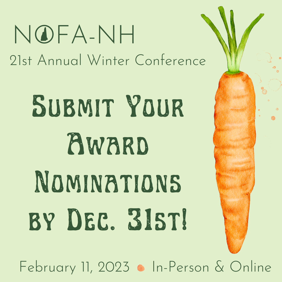 Each year, NOFA-NH is pleased to provide an opportunity to recognize leaders in the organic farming community at our Winter Conference. Please help us identify and honor those deeply committed to organic agriculture and advocacy!