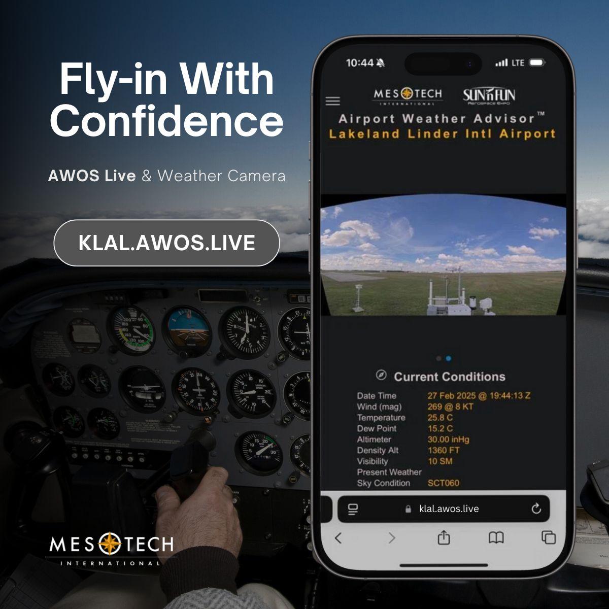 At SUN ‘n FUN, safety and precision are top priorities and thanks to Mesotech, our official weather sponsor, pilots and attendees can access and see real-time weather conditions straight from the AWOS at Lakeland Linder International Airport (KLAL).