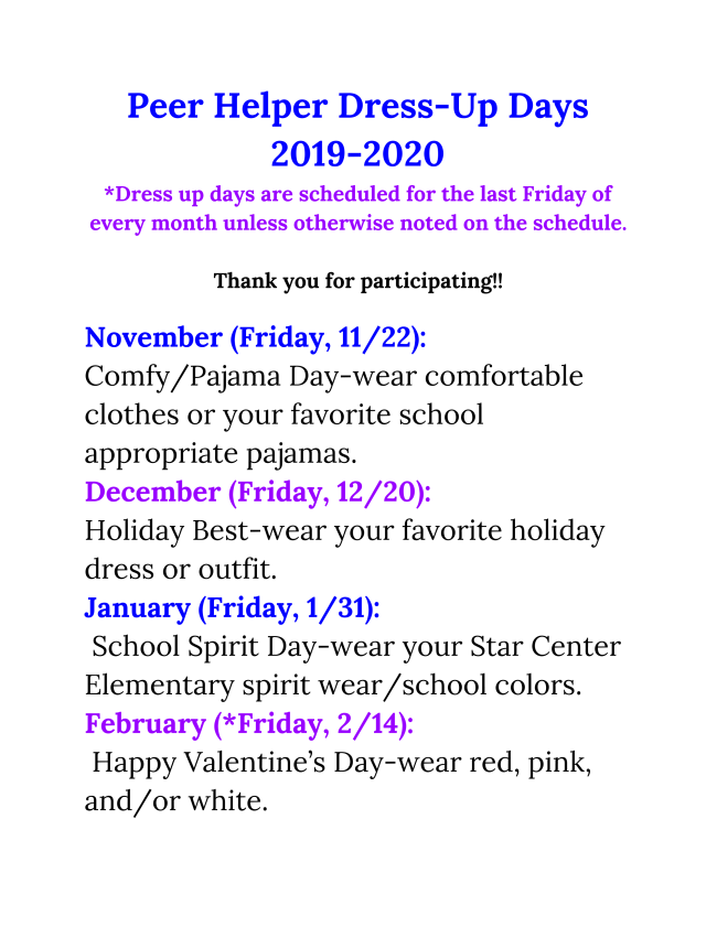 - Peer Helper Dress Up Day--Comfy Pajama Day