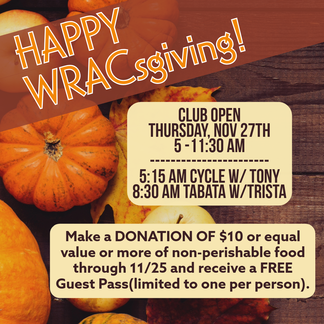 Classes: Cycle @ 5:15AM, Turkey Tabata @ 8:30AM