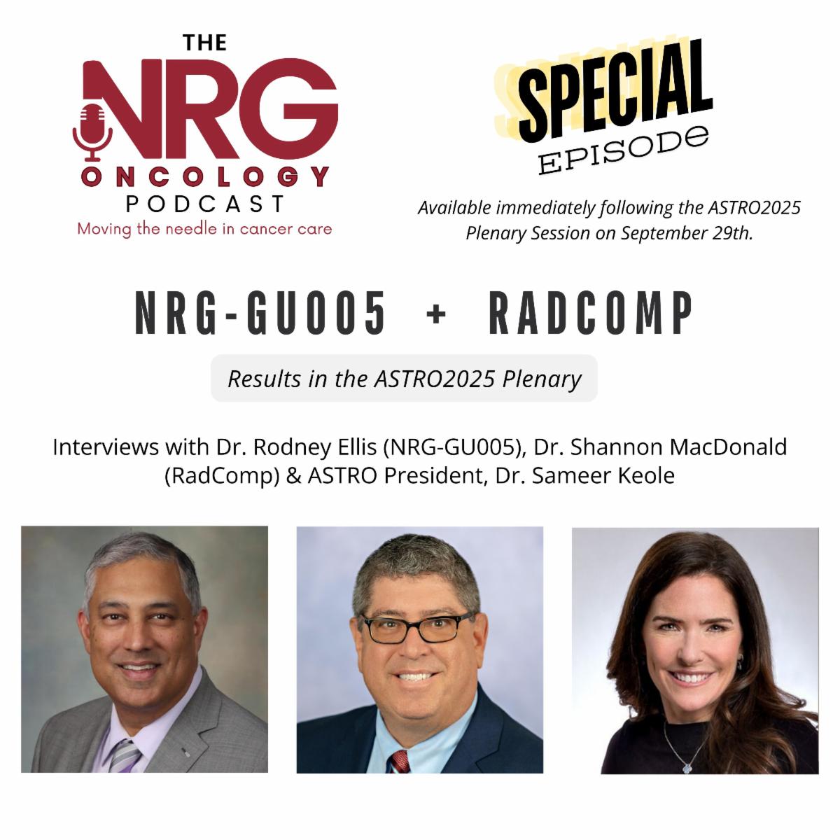 | | Just in case you missed all the buzz, we recapped all the research highlights from NRG Oncology trials presented at the 2025 American Society for Radiation Oncology (ASTRO) Annual Meeting in this email broadcast. NRG research was presented in the Plenary Session, Clinical Trials Session, Late-Breaking Session and included many oral and poster presentations throughout the entire conference. | | NRG Oncology Group Chair, Dr. Le, Receives 2025 ASTRO Gold Medal | | Congratulations to NRG Oncology Group Chair, Dr. Quynh-Thu Le, on receiving a 2025 ASTRO Gold Medal. The ASTRO Gold Medal is reserved for individuals who have made truly exceptional contributions to radiation oncology across multiple domains: clinical care, research, education, and service to the profession. | | | September was a VERY busy month for our NRG Oncology Podcast. We covered precision oncology, clinical research, and collaboration with Dr. Wafik El-Deiry. We also were at the frontlines of ASTRO 2025 covering groundbreaking research out of NRG Oncology. If you haven’t tuned in yet, find us at www.NRGOncology.org/Podcast as well as Apple, Spotify, Amazon, and YouTube. Give us a follow or subscribe to listen to new episodes as they air! | | |