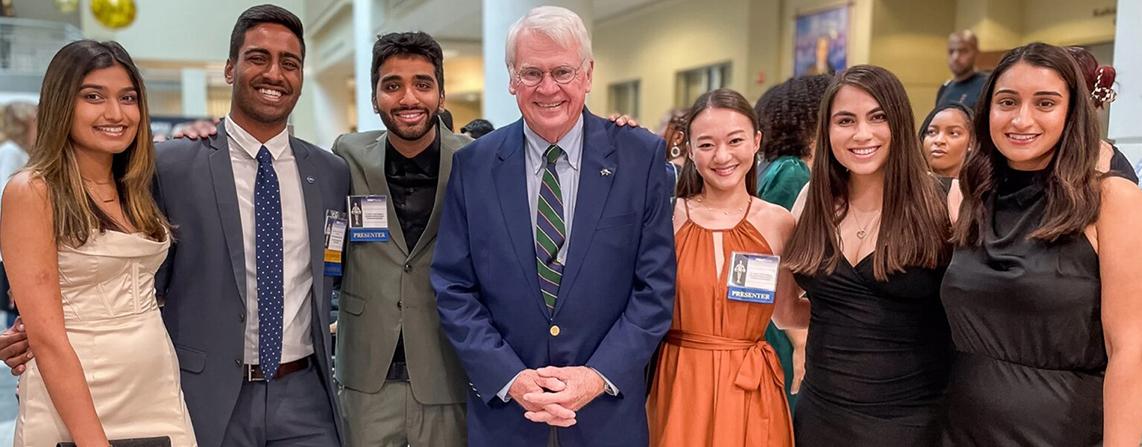 "Dr. Moon has his feet on the earth, but his imagination and his hopes are up in the sky." –Maria Padilla, M.D., Executive Associate Dean, Dr. Kiran C. Patel College of Allopathic Medicine. In this video, student and faculty members react to Moon's investiture as the seventh president of the university.